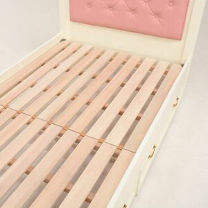 【リボンレリーフがキュートなベッドに、取っ手もお洒落な引出しがプラス。